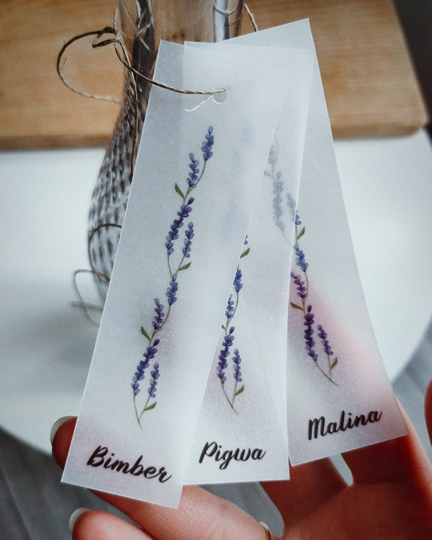 Dopełnij aranżację używając zawieszek. Mogą stać się ozdobą butelek lub prezentów dla gości. Ich treść może być dowolnie modyfikowana.
