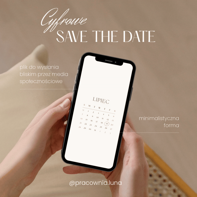 To personalizowane Save the Date w formacie cyfrowym jest idealne do wysłania przez wiadomość, e-mail lub media społecznościowe. Wysyłane z wyprzedzeniem – jeszcze przed oficjalnymi zaproszeniami – pozwala gościom zapisać termin i oczekiwać dalszych informacji. Stonowana kolorystyka, wysmakowany projekt i prosty przekaz czynią ten wzór idealnym wyborem dla par, które kochają elegancję bez przepychu.