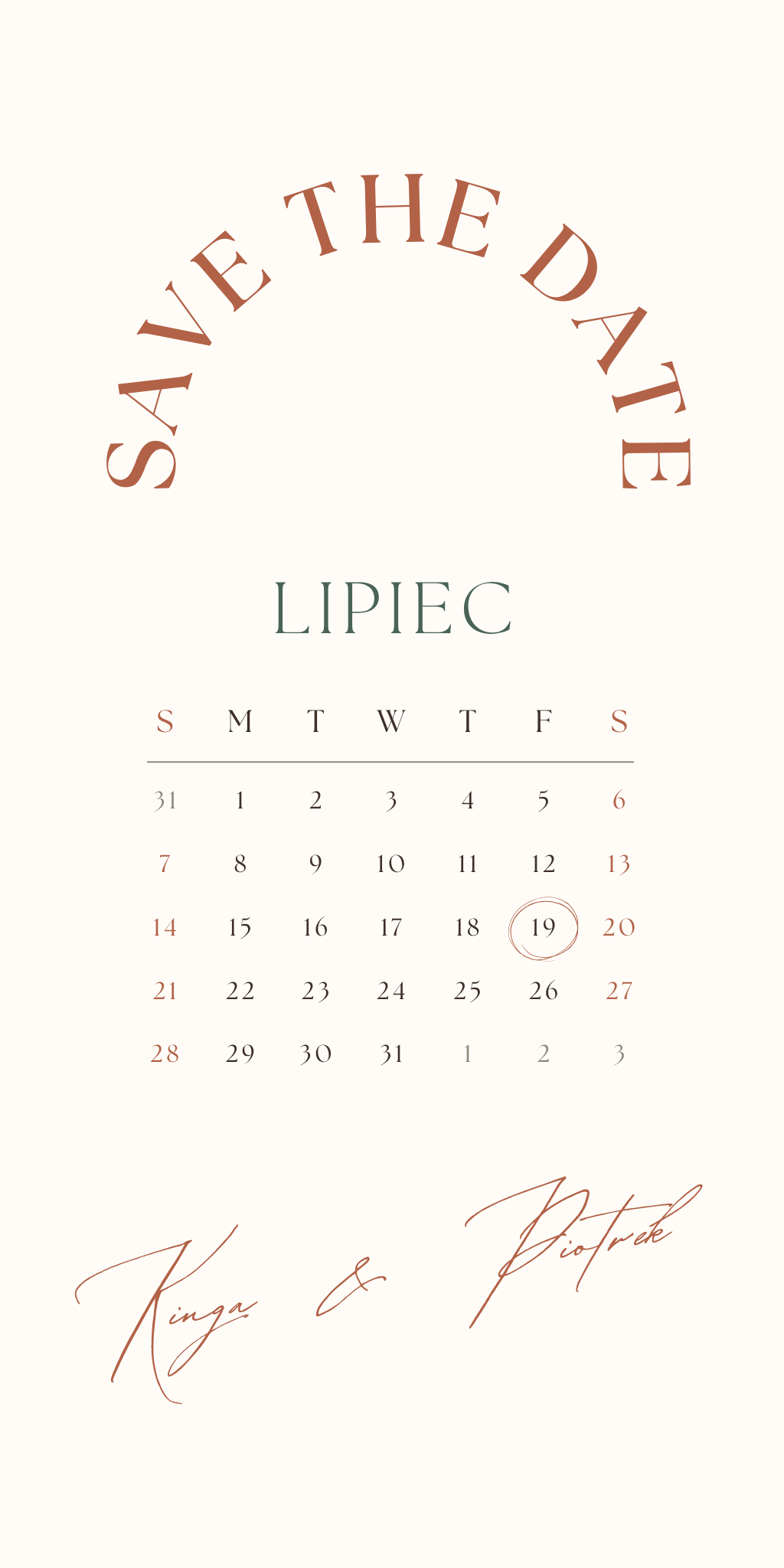 Minimalistyczne, animowane Save the Date na telefon, które w elegancki sposób informuje bliskich o planowanej dacie ślubu. Tekst stopniowo pojawia się na ekranie, tworząc efektowną prezentację daty i imion Pary Młodej. Układ kalendarzowy, klasyczna typografia i delikatna animacja sprawiają, że zapowiedź ślubu nabiera wyjątkowego charakteru.