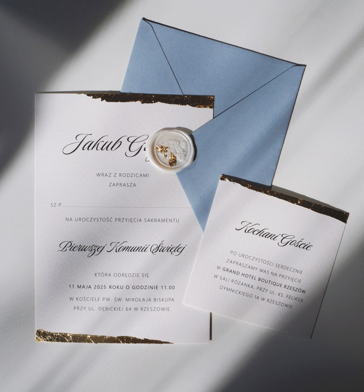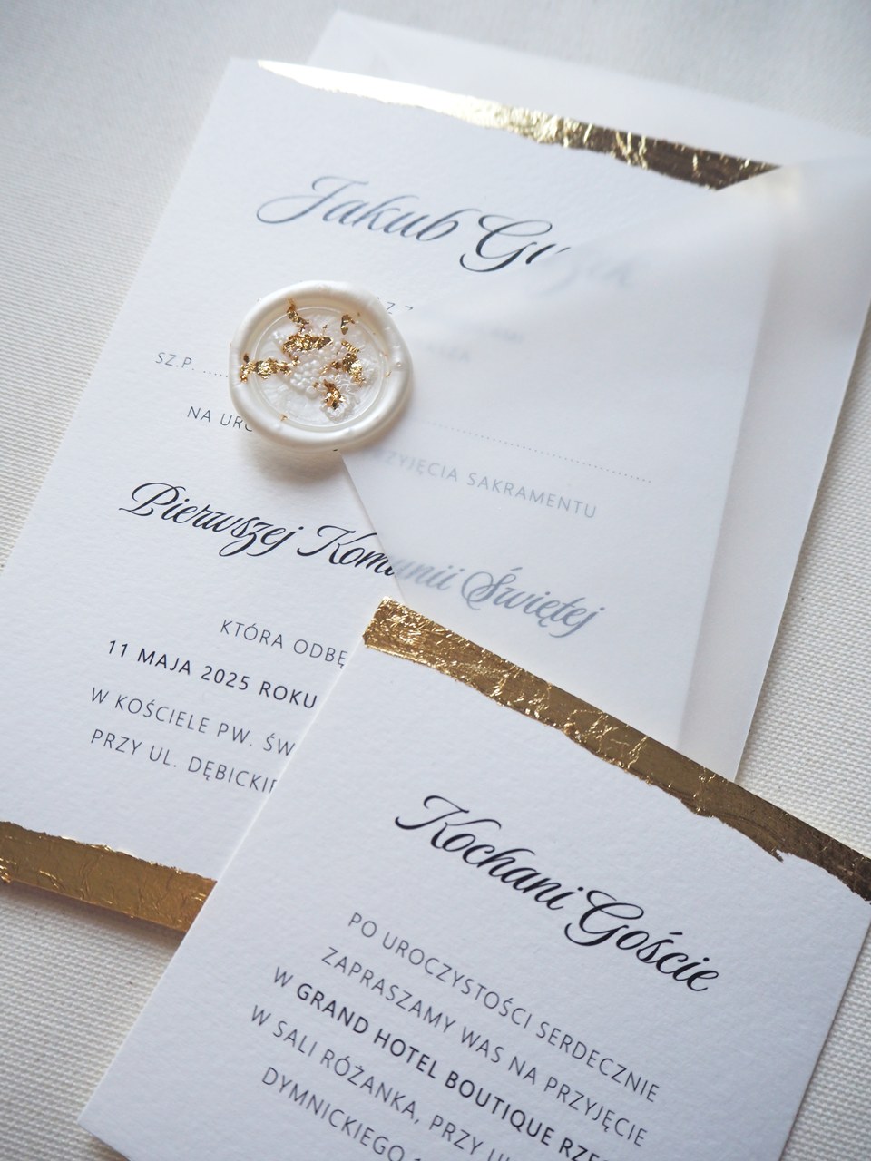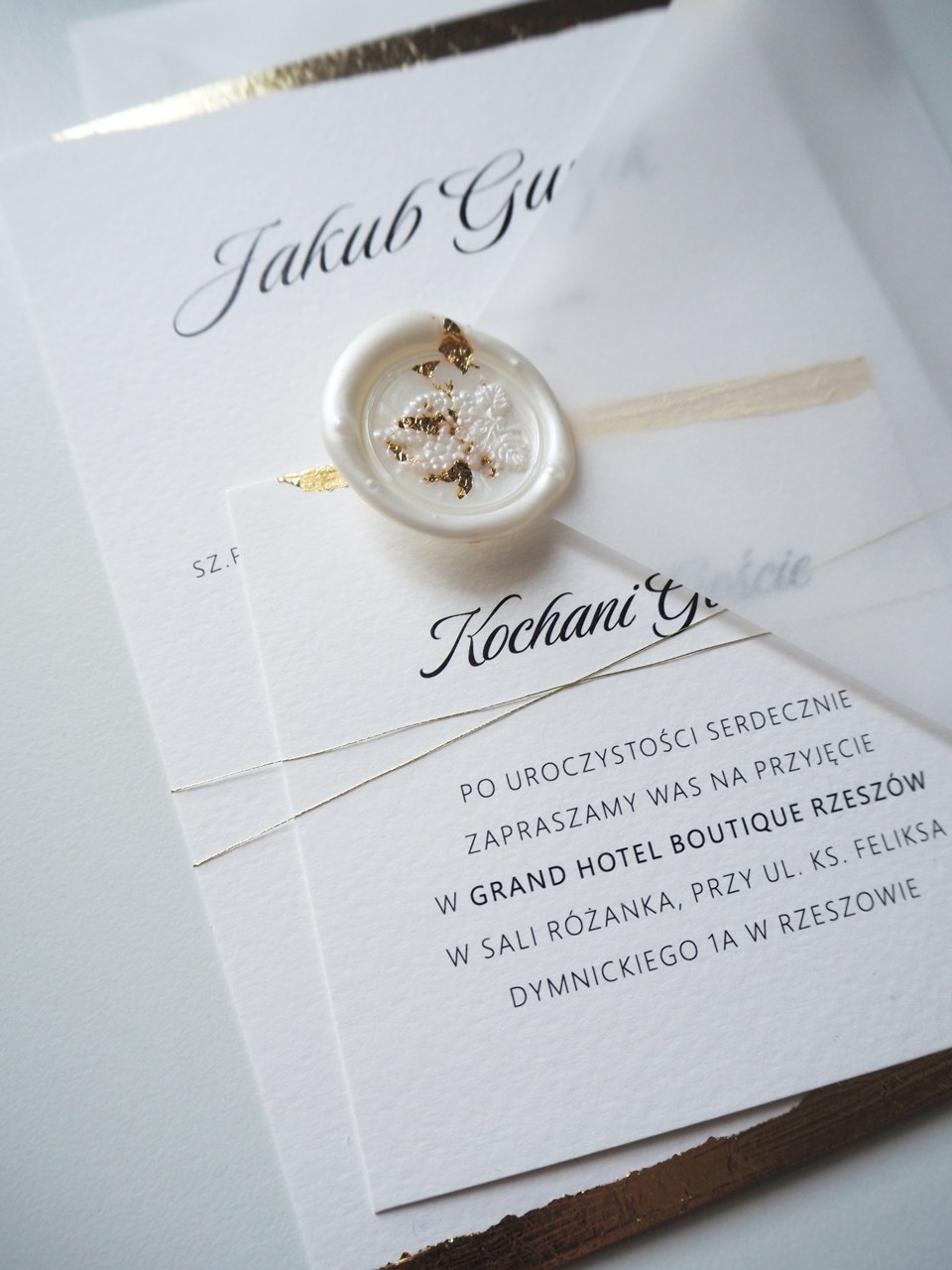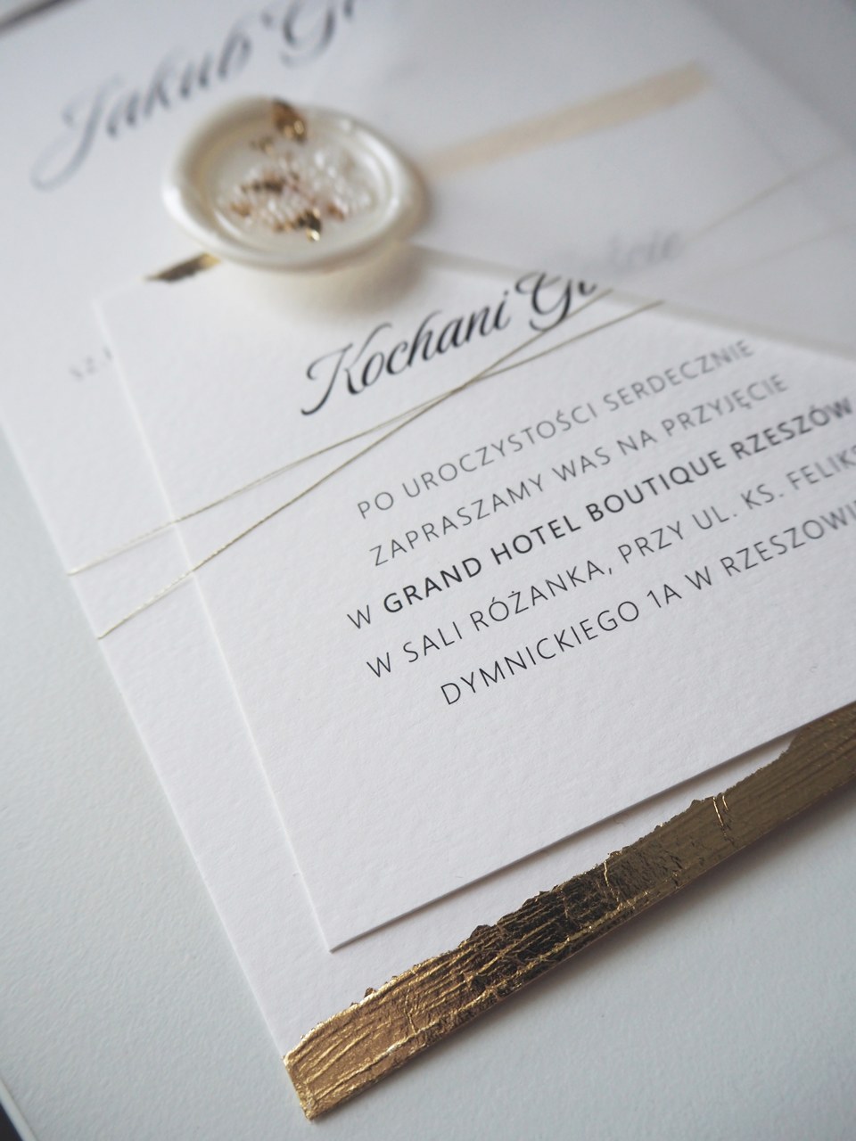 Zaproszenia mają dodatkową opcję ręcznych złoceń i lakowania kopert.